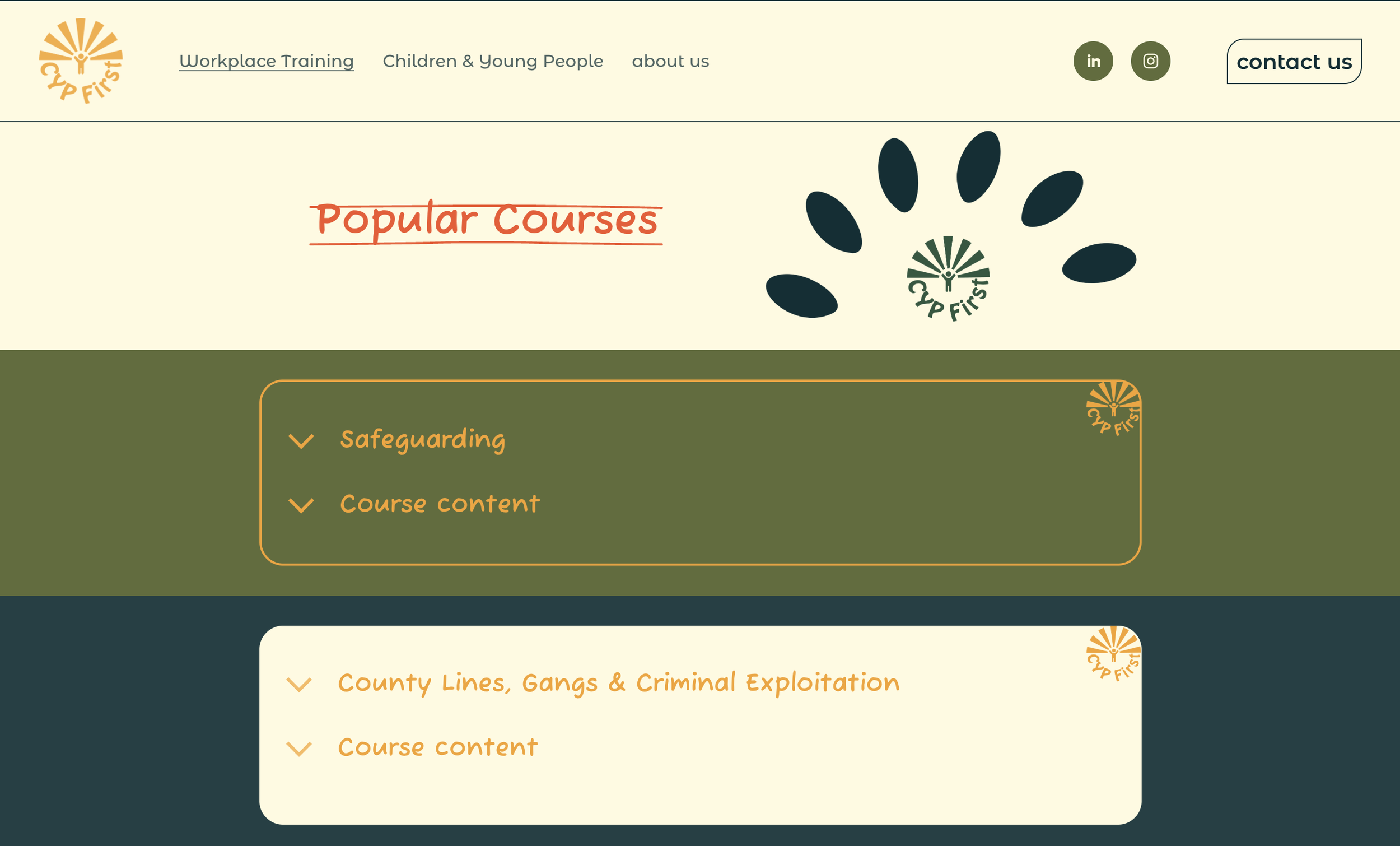 CYP First asked OA&T to rebrand, with a new logo design and website, to show their training courses as both highly professional and friendly, using bold colours and shapes with a retro feel. The site needed to showcase the sectors they work within, a directory of courses on offer, and be easy to navigate.